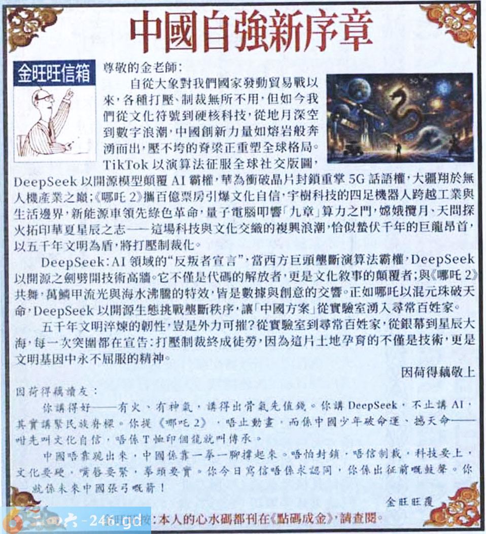 003期:金旺旺信箱彩民推荐→→《中國自強新序章》