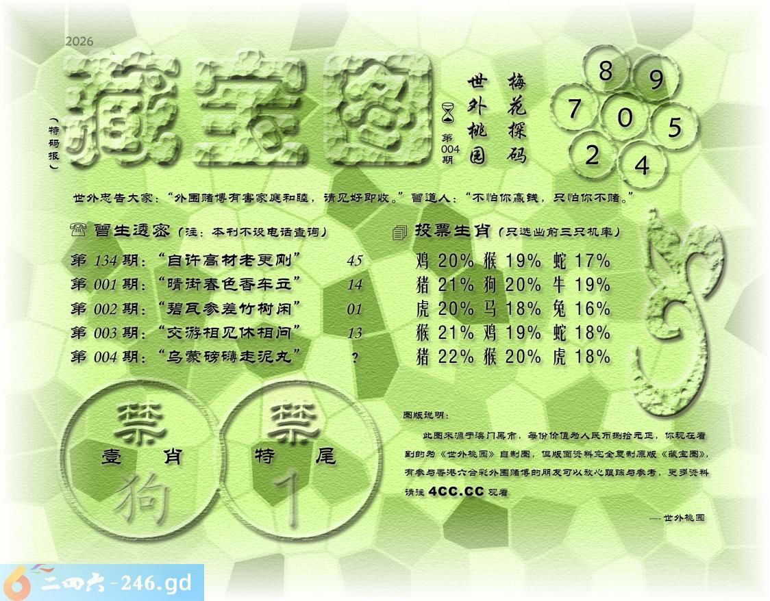 004期藏寶圖 新:天教谪入群花苑 老:乌蒙磅礴走泥丸 禁:狗 禁:1尾 玄機字:《收》