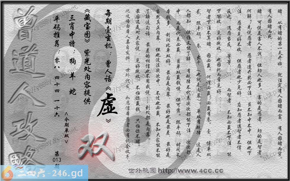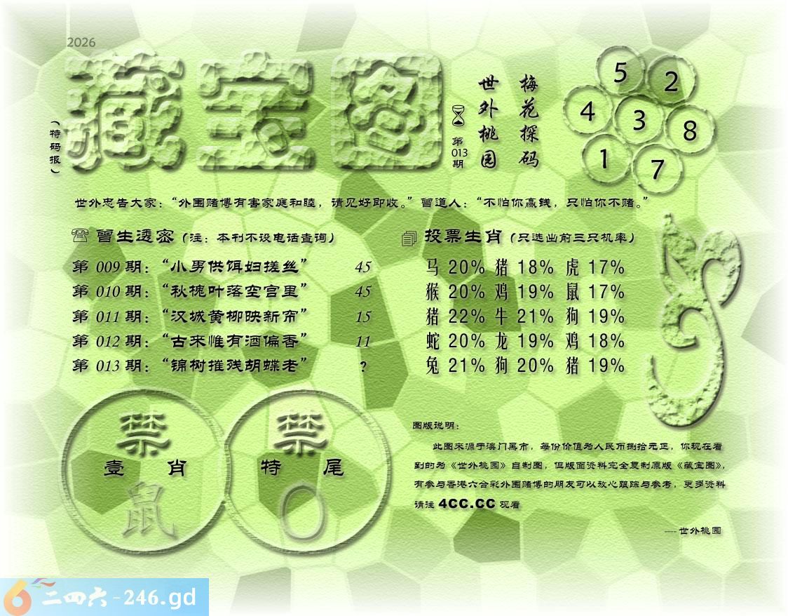 013期藏寶圖 新:遥知贼胆纵横破 老:锦树摧残蝴蝶老 禁:鼠禁:0尾玄機字:《虚》