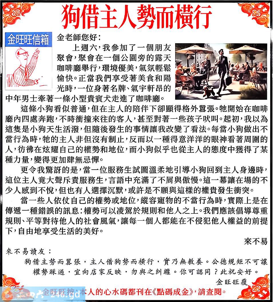021期:金旺旺信箱彩民推荐→→《狗借主人勢而橫行》