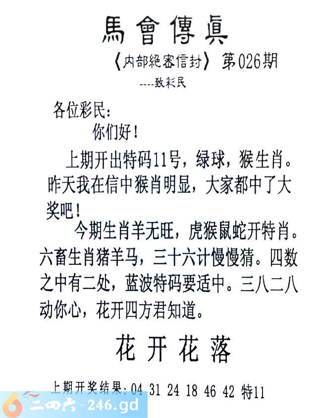 026期:首发推荐:≮馬會傳眞≯→(香港正版)