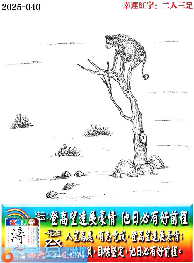040期老版跑狗一字記之曰:【登】 詩雲:登高望遠展豪情,他日必有好前程。